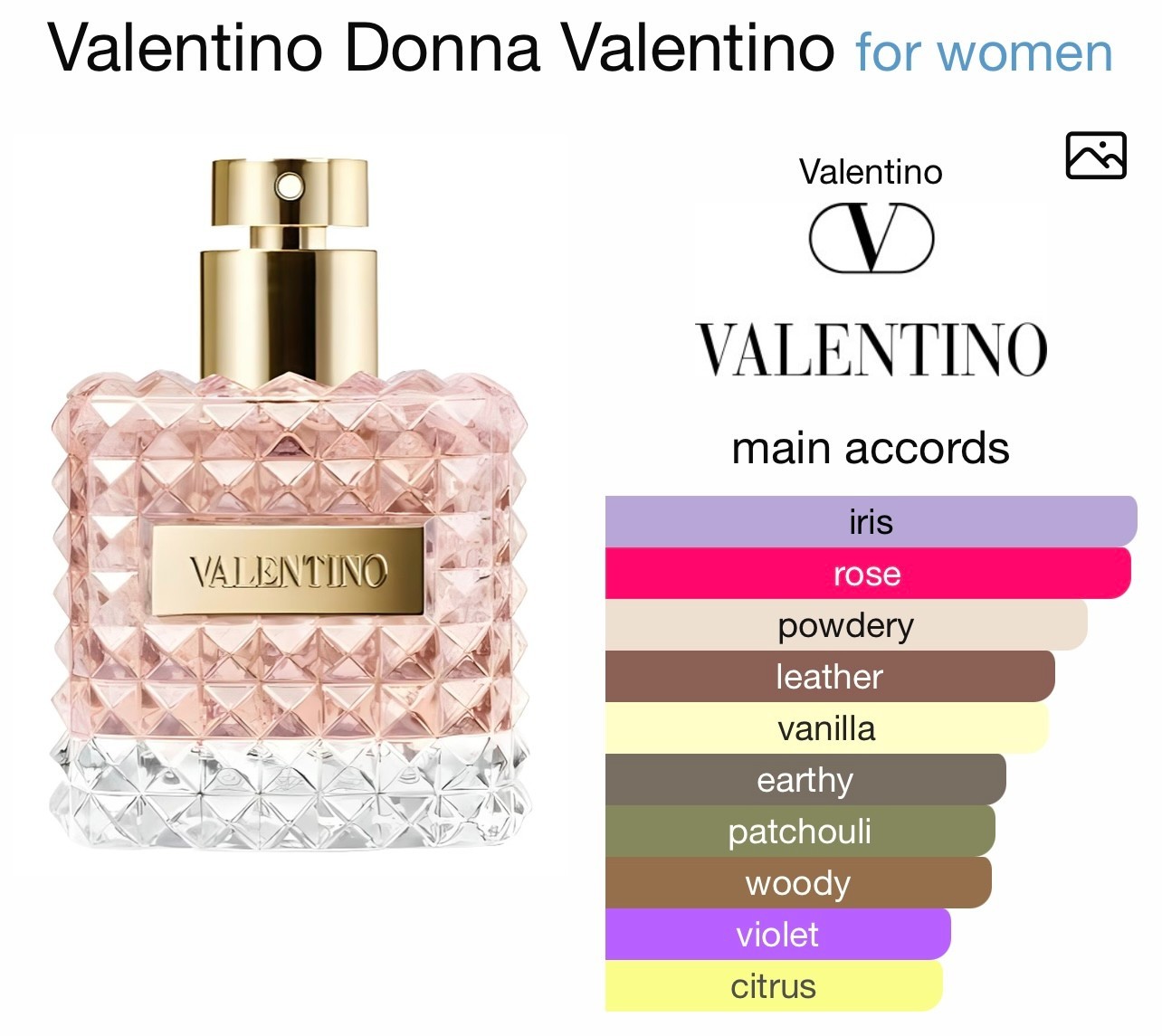 Valentino Donna opens with a sparkling burst of bergamot, setting a bright and fresh tone. As the scent unfolds, delicate heart notes of iris and rose bloom gracefully, adding a soft floral charm. The fragrance settles into a warm, inviting base of leather, patchouli, benzoin, and sweet vanilla—creating a rich and comforting finish that lingers beautifully on the skin.